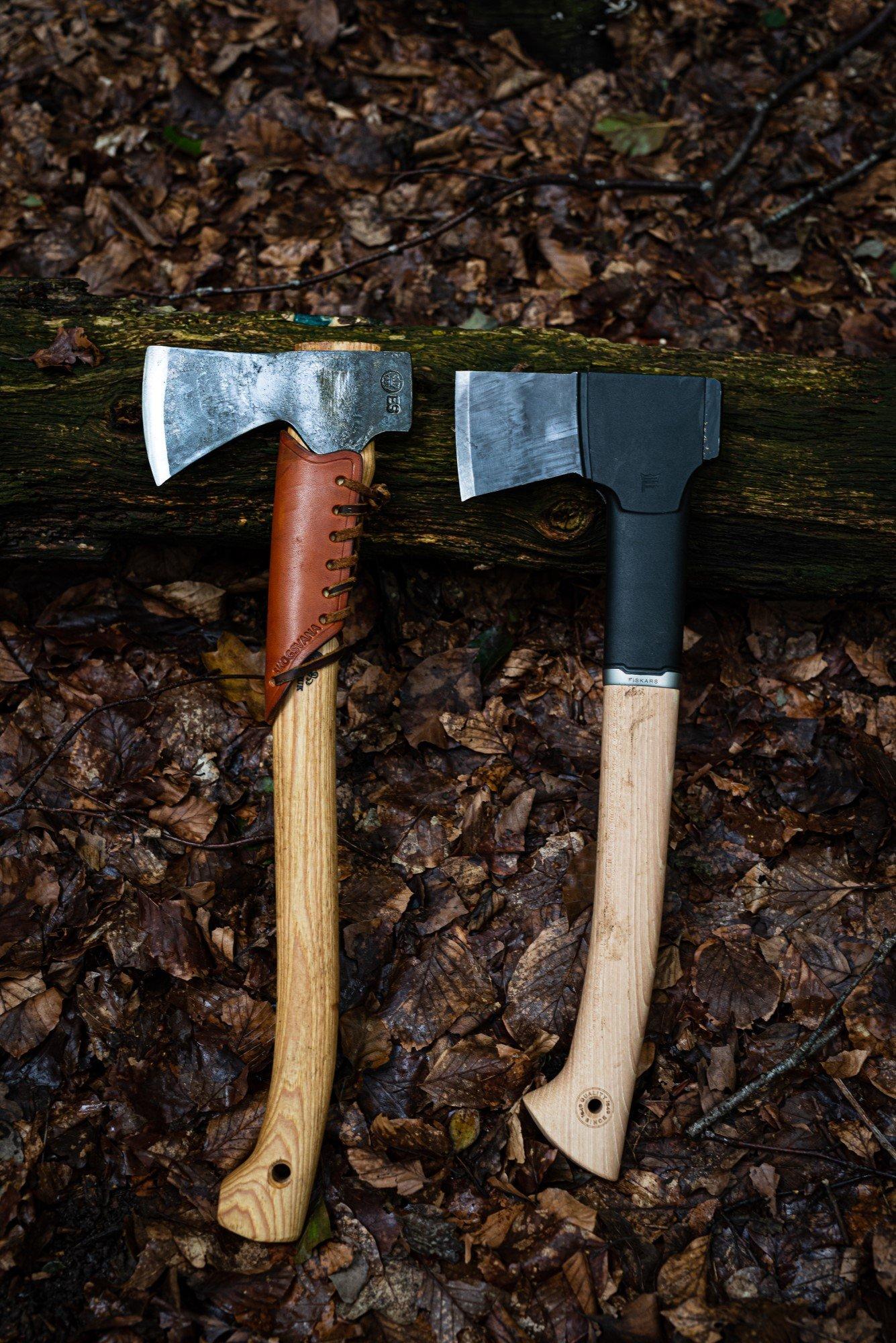 Deze ‘simpele dingen’ kun je echter niet uitvoeren als je niet over de juiste tools beschikt. Een mes en zaag spelen vaak een grote rol, maar een tool die je echt nodig gaat hebben als je tijd doorbrengt in het bos is een bijl! Ik kocht mijn eerste bijl 2,5 jaar geleden. Een kleine Zweedse hakbijl. Ik zag het, werd verliefd en de rest is geschiedenis. Dat is eigenlijk hoe mijn passie begon. De Zweden staan er (wereldwijd) om bekend dat ze ontzettend goede bijlen maken. Ze gebruiken oude smeedtechnieken en houten handgrepen. Ze produceren in principe bijlen zoals ze al duizenden jaren worden geproduceerd.