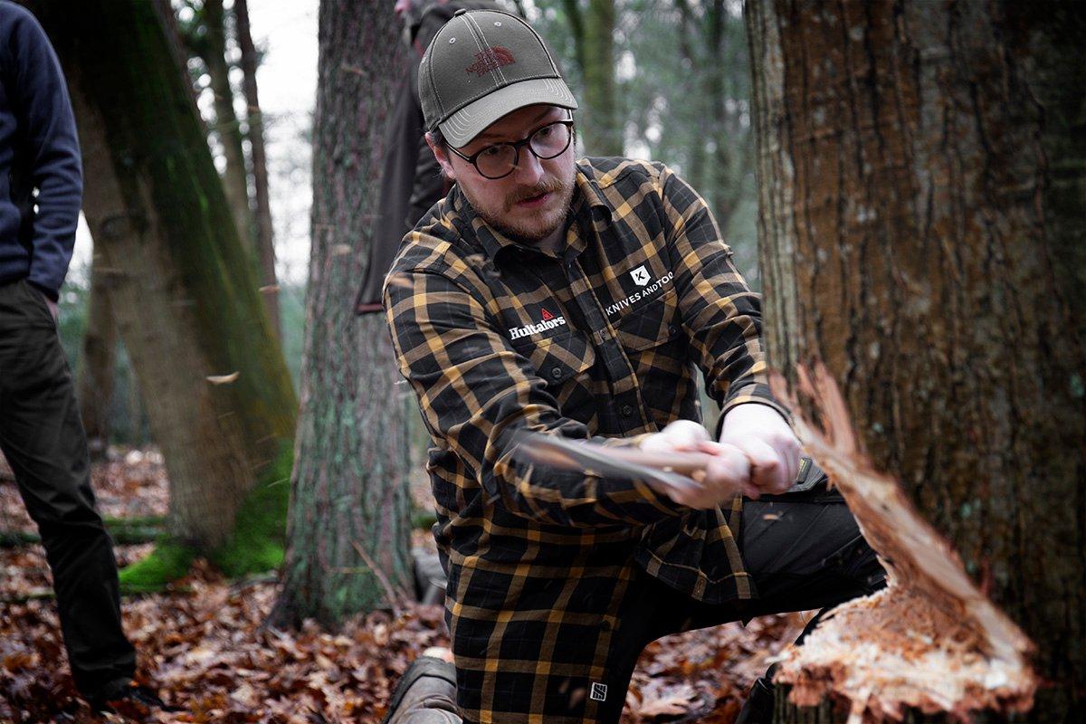 - In principe gebruik je de kloofbijl met beide handen, ook vanwege het gewicht.