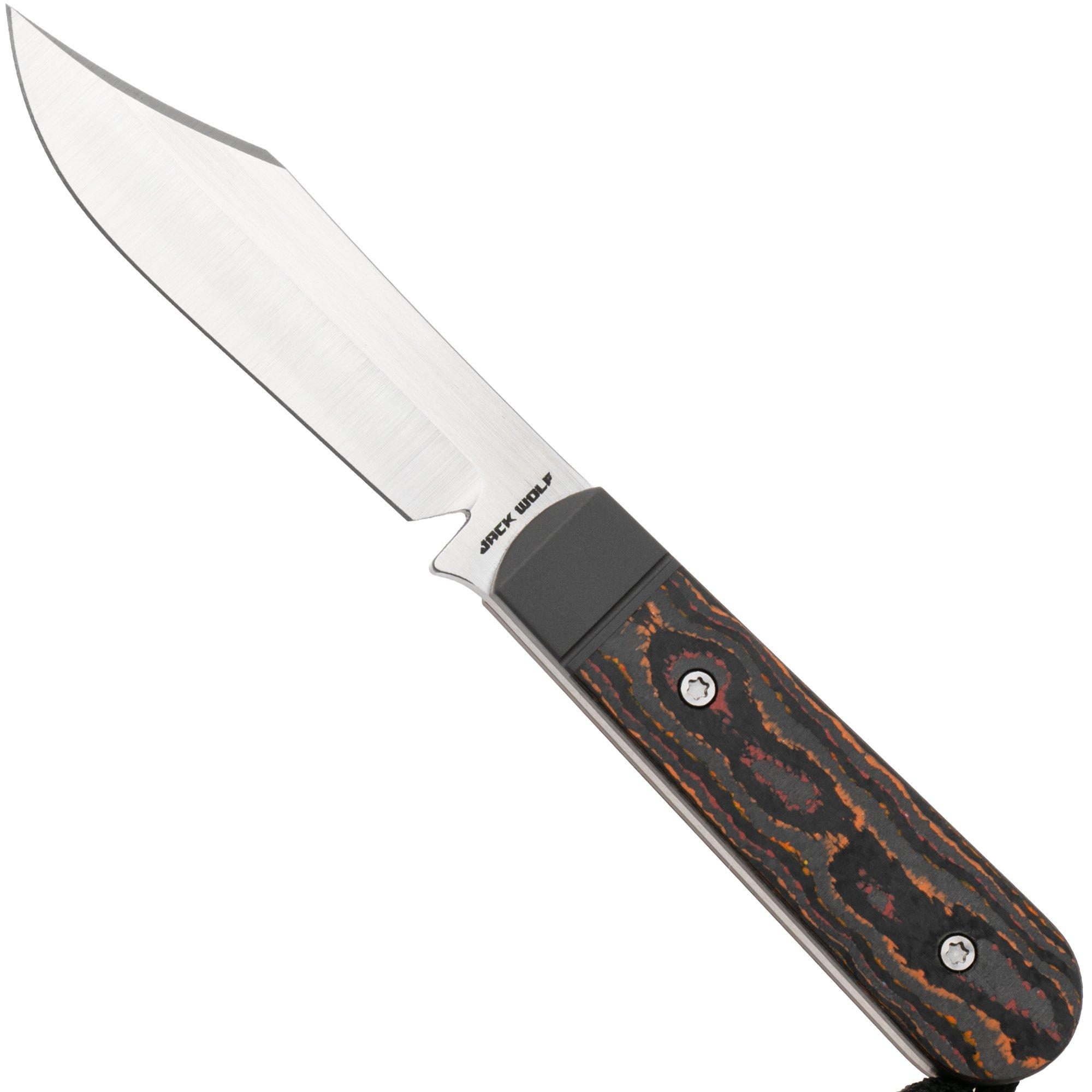 Jack Wolf Backwoods FIXedc BACKW-FX-01-CC-SUN-ORA Satin CPM S90V, Sunset Orange CamoCarbon, vaststaand mes, Melissa Backwoods Miller design