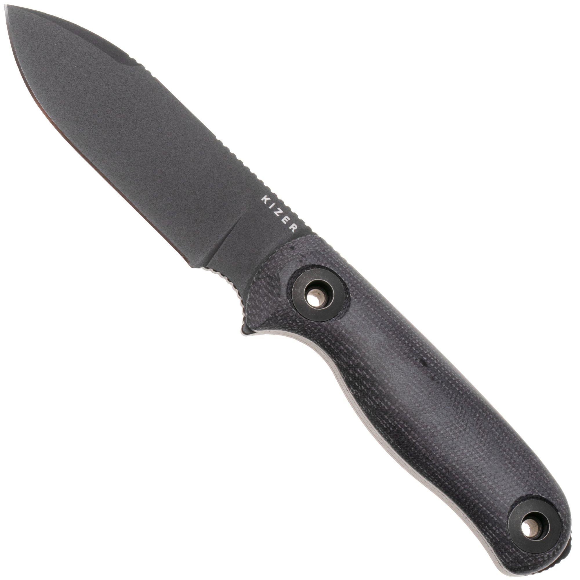 Kizer Drop Bear Fix 3, 1101A1, Satin Sandvik 14C28N, Black G10 bushcraftmes, Azo design
